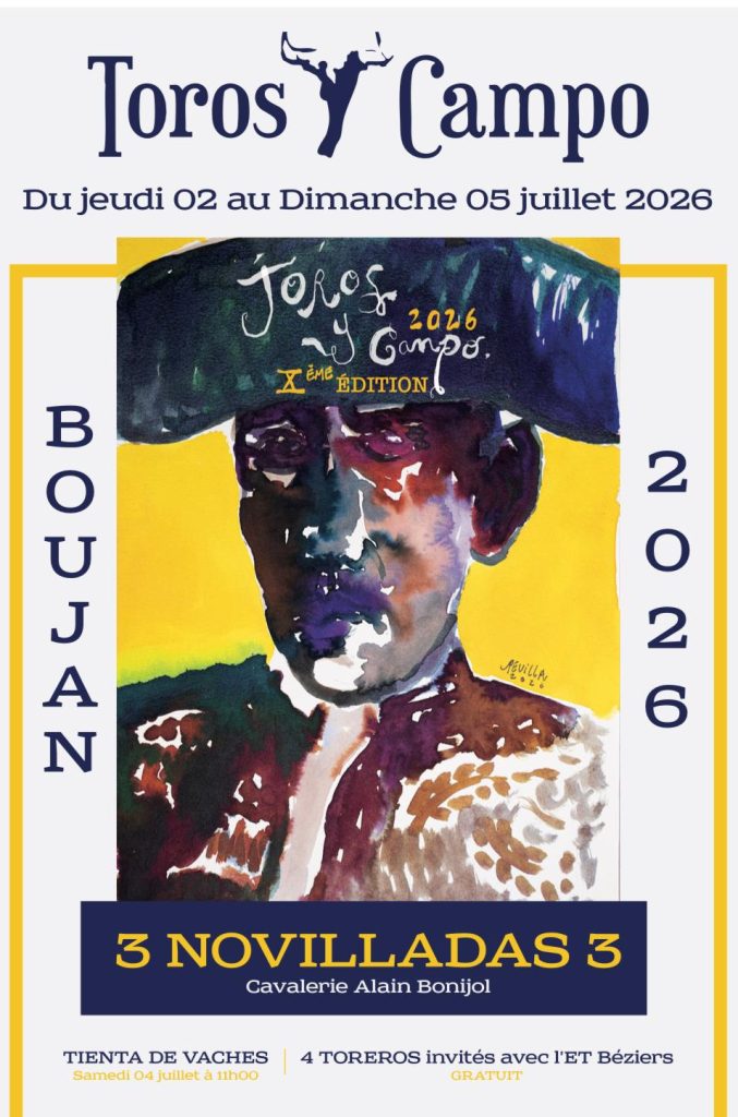 ARÈNES DE BELLEGARDE Départ de Béziers en bus à 7 H 45 devant la piscine (arrêt de bus) Participation : 55 €/personne 9h30OUVERTURE DU VILLAGE DE LA PRIMAVERA et petit-déjeuner de la jeunesse proposé par l’UJPL, exposants, peña 10h15 BOLSÍN PEPE DE MONTIJO FINALE AVEC MISE À MORT 2 erales de la ganadería CURE DE […]