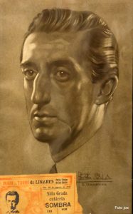 La carrière de Manolete, commencée en 1939, se termine brutalement et tragiquement par sa mort en 1947 dans les arènes de Linarès, à la suite d’une cornada dans la fémorale donnée par le toro Islero de la ganaderia Miura. Près de 80 ans après sa mort, il reste un des toreros emblématiques de l’histoire de la corrida de toros. Les images que nous avons pu voir au travers de films et de photos d’époque, nous montrent un courage (jamais exprimé avec tant de maîtrise) mais aussi sa classe tant dans les ruedos que dans la vie publique. Les premières années de sa carrière, il ne rencontra pas de concurrence dans le monde des toreros. Ce n’est qu’en 1945 qu’apparaît Luis Miguel Gonzalez “Dominguin” lorsqu’il confirme son alternative des mains de Domingo Ortega. Torero de style “largo”, il pratiquait toutes les suertes avec des qualités athlétiques remarquables et une intelligence pour “interpréter” les toros. Fidèle à son caractère, il nourrit le projet de surclasser Manolete et le défie par une lettre ouverte envoyée à la presse. En août 1947, ils toréent ensemble deux corridas et le 28 août, ce fut la tragédie de Linarès. Luis Miguel Dominguin et Gitanillo de Triana l’accompagnaient au paseo ce jour-là.