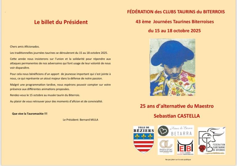 JOURNÉES TAURINES DU 15 AU 18 OCTOBRE